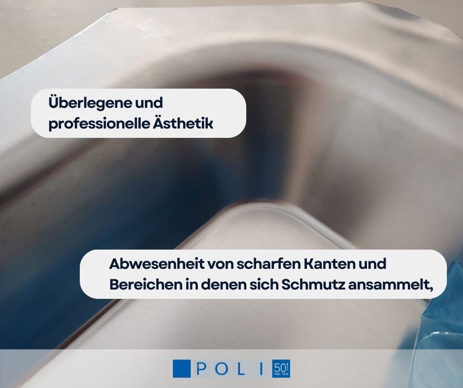 - Fehlen von scharfen Kanten und Bereichen für Schmutzansammlungen